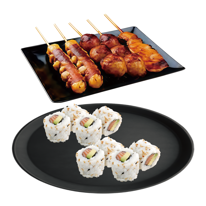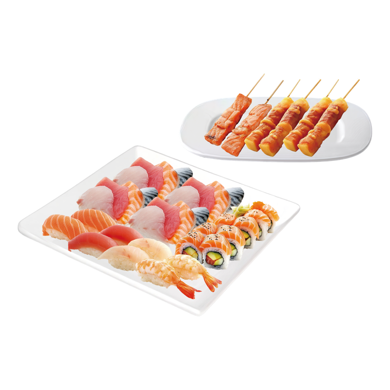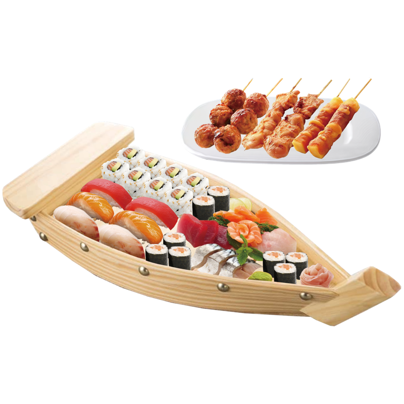 2 soupes 2 salades,2riz 8 sushi assortis,8 maki royal,16 sashimi assortis,6 brochettes:4 boeuf au fromage,2saumon